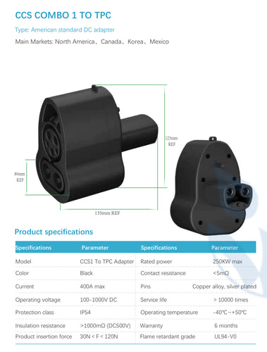 MANINAM CCS1 to TPC DC Adapter for TESLA Vehicle Fast Charging at Non-Tesla Charging Stations like Charge America