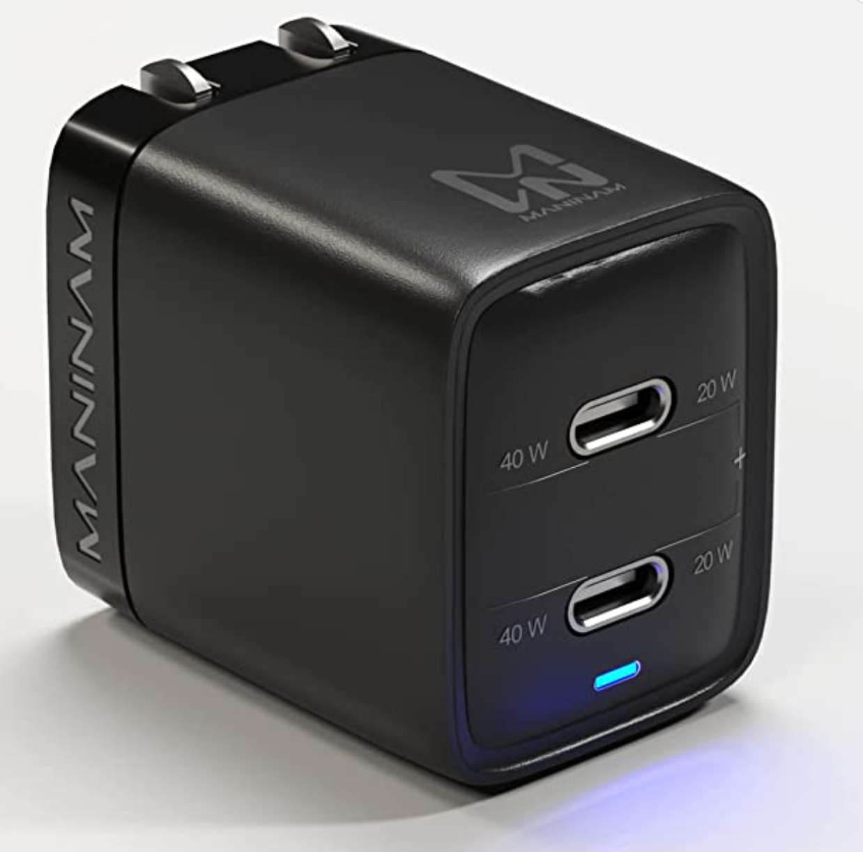 - [MULTI-DEVICE, MULTI-USB] MANINAM Adaptive charging for all types of devices from small Airpod to large Laptop at max speed without battery damages. 40 watt Intelligent Power Allocation between the C ports, maxing each to 40W.